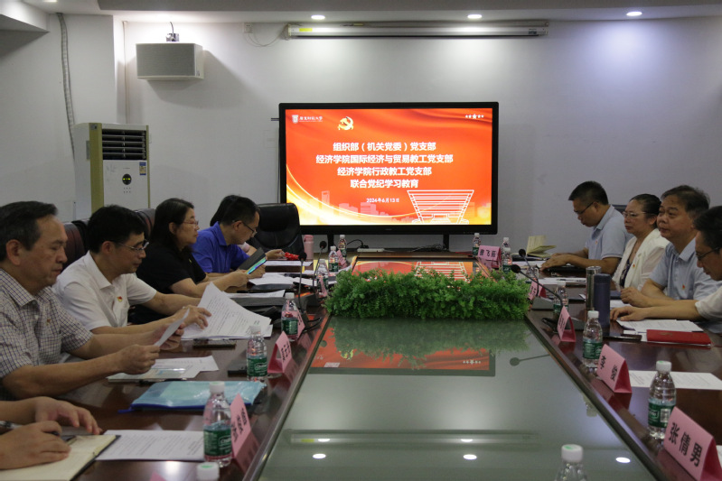为深化党纪学习教育,6月13日,组织部(机关党委)党支部在立德楼231与经济学院国际经济与贸易教工党支部、行政教工党支部联合开展警示教育联合主题党日,活动由经济学院党委书记袁东卫主持。